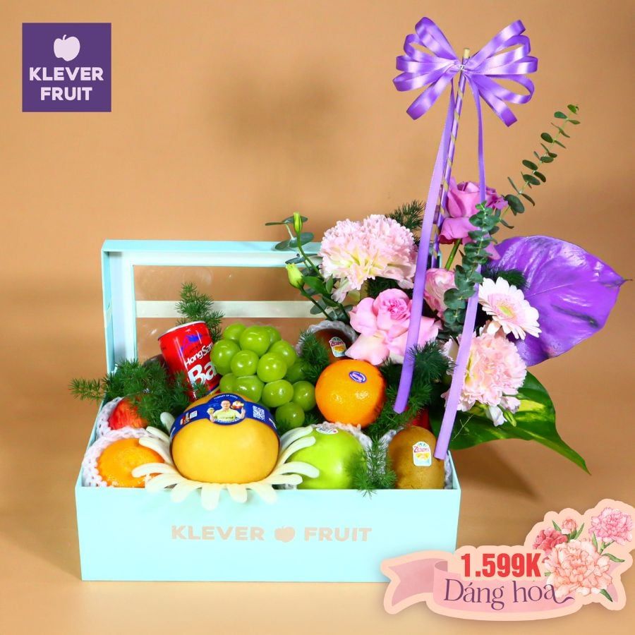 Hộp Trái Cây Mix Hoa Tươi Tone Tím Hồng Tặng 20/10 – Quà Tặng Phụ Nữ Thanh Lịch, Tinh Tế | Klever Fruit