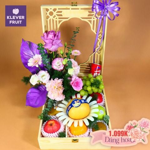 Hộp Gỗ Trái Cây Mix Hoa Tươi Tặng 20/10 – Món Quà Tặng Phụ Nữ Ý Nghĩa, Tinh Tế | Klever Fruit