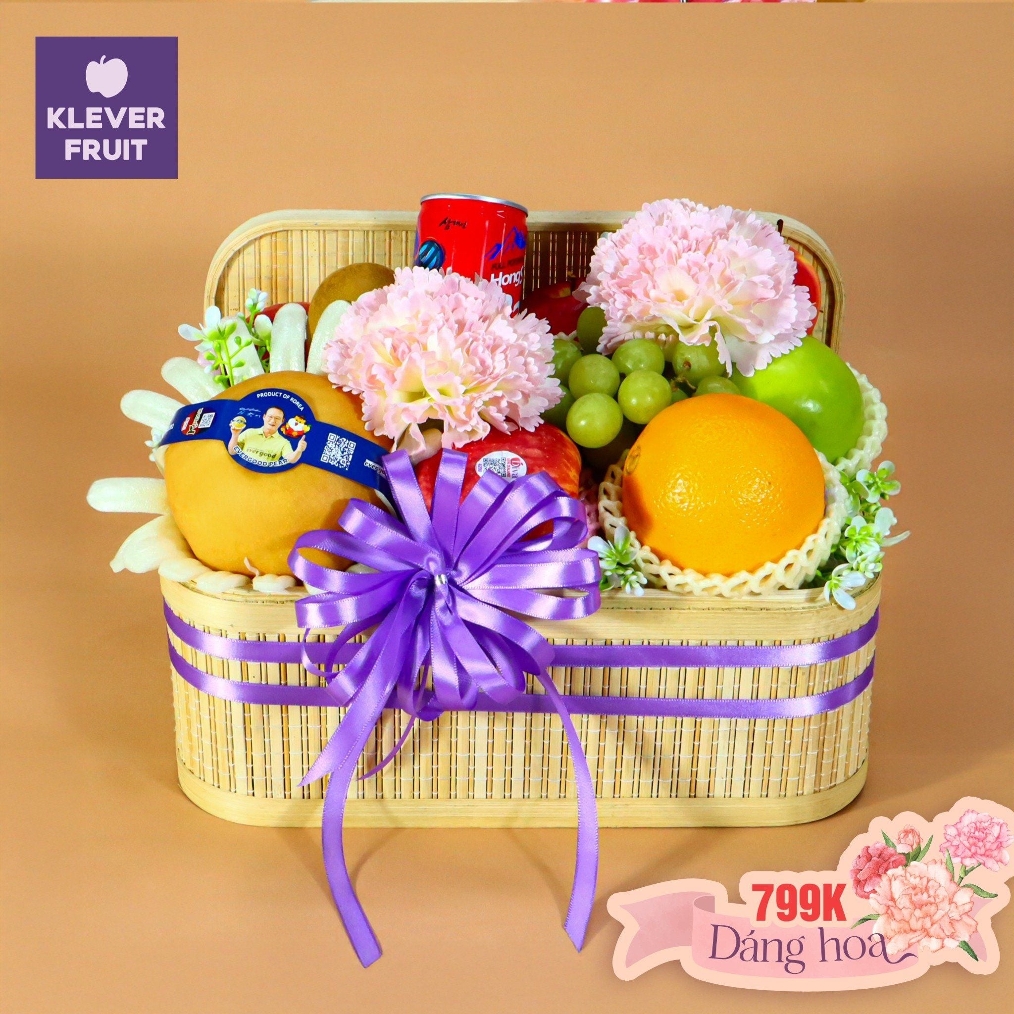 Set Quà 20/10 Trái Cây Mix Hoa Hồng Lụa
