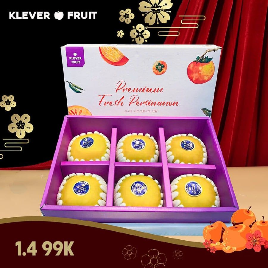 Hộp Quà Tết Hồng Hàn Quốc VIP Hộp 06 Quả - Món Quà Tết Sang Trọng Cho Năm Mới 2026