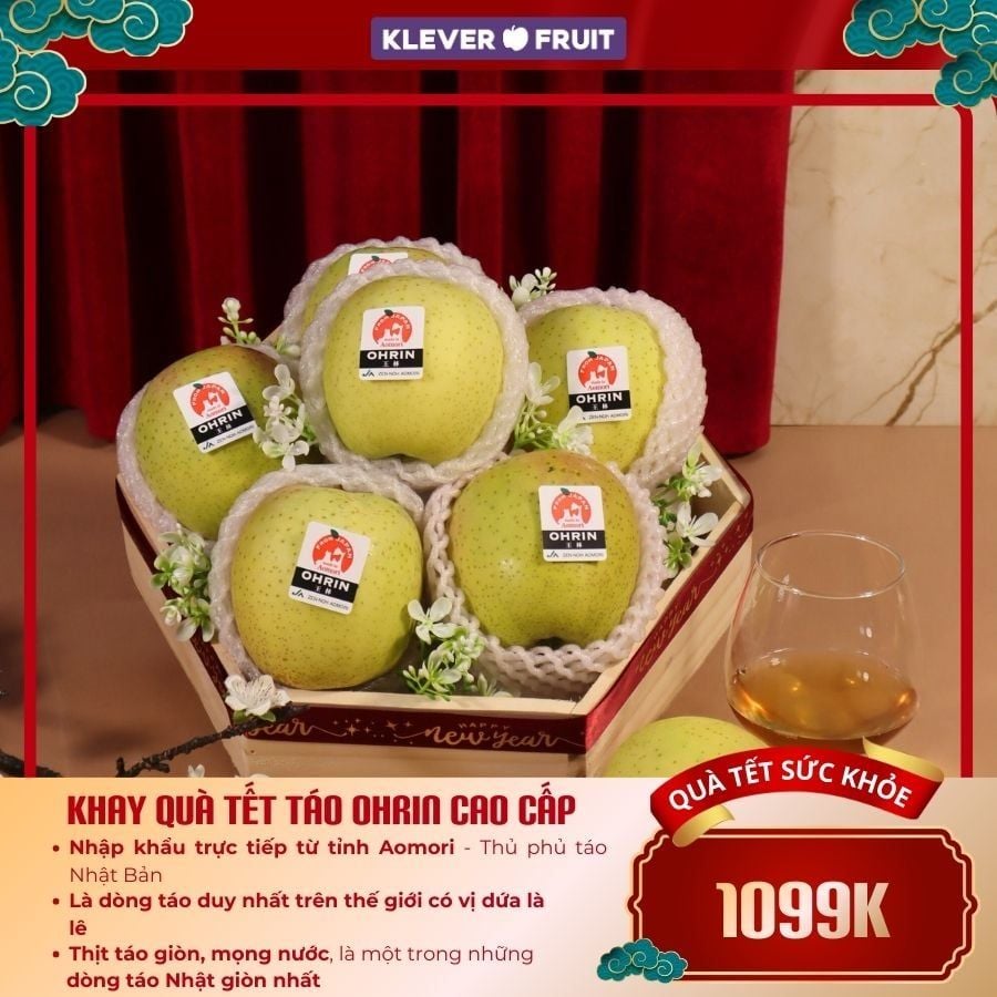 Hộp quà Tết Táo Ohrin Nhật Bản là sự lựa chọn hoàn hảo cho dịp Tết 2026, với vị ngọt thanh đặc trưng kết hợp hài hòa giữa dứa và lê. Đây là giống táo được lai tạo từ Indo và Golden Delicious, với đặc tính giòn và ngọt, ít acid, cực kỳ phù hợp cho mọi đối tượng, kể cả người có dạ dày nhạy cảm. Đây chắc chắn sẽ là món quà hoàn hảo nhất để sử dụng trong những ngày đầu xuân năm mới.