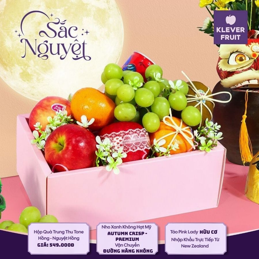 Hộp Quà Trung Thu Tone Hồng – Nguyệt Hồng Sang Trọng tại Klever Fruit